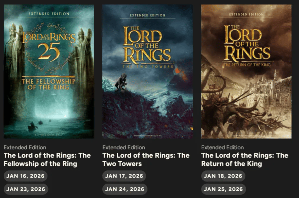 They’re going to do the same thing w/ Lord of the Rings! Extended versions are coming to theaters. That’s… a lot of time, heh.