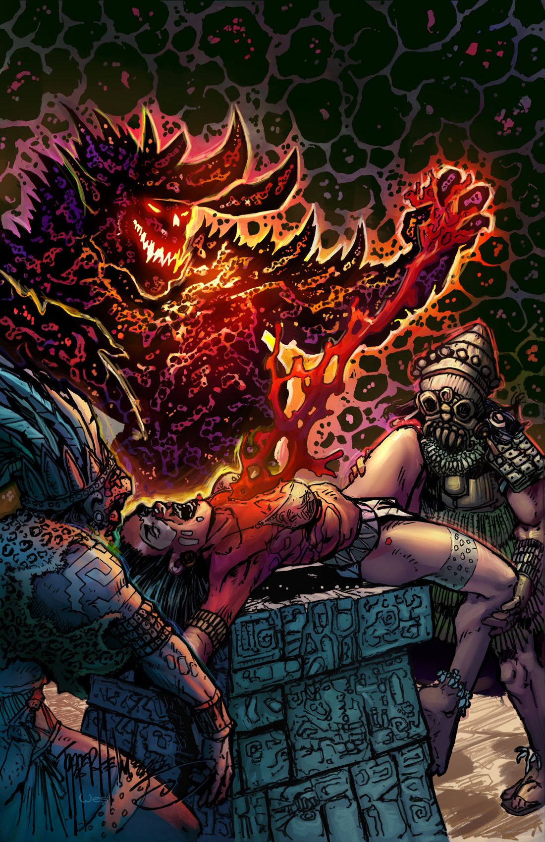 As promised, here are the colors for Topper Helmers’s gruesome blood sacrifice cover for Issue #6, with full colors by Wesley Wong.